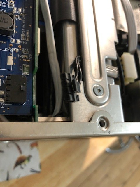 The problem is that the 3 cables that are connected to the DC-to-Dc board are cut. The seller tells me that when he bought it they were already cut, I don't know why the first owner cut them, but they are all 3 cut in half.