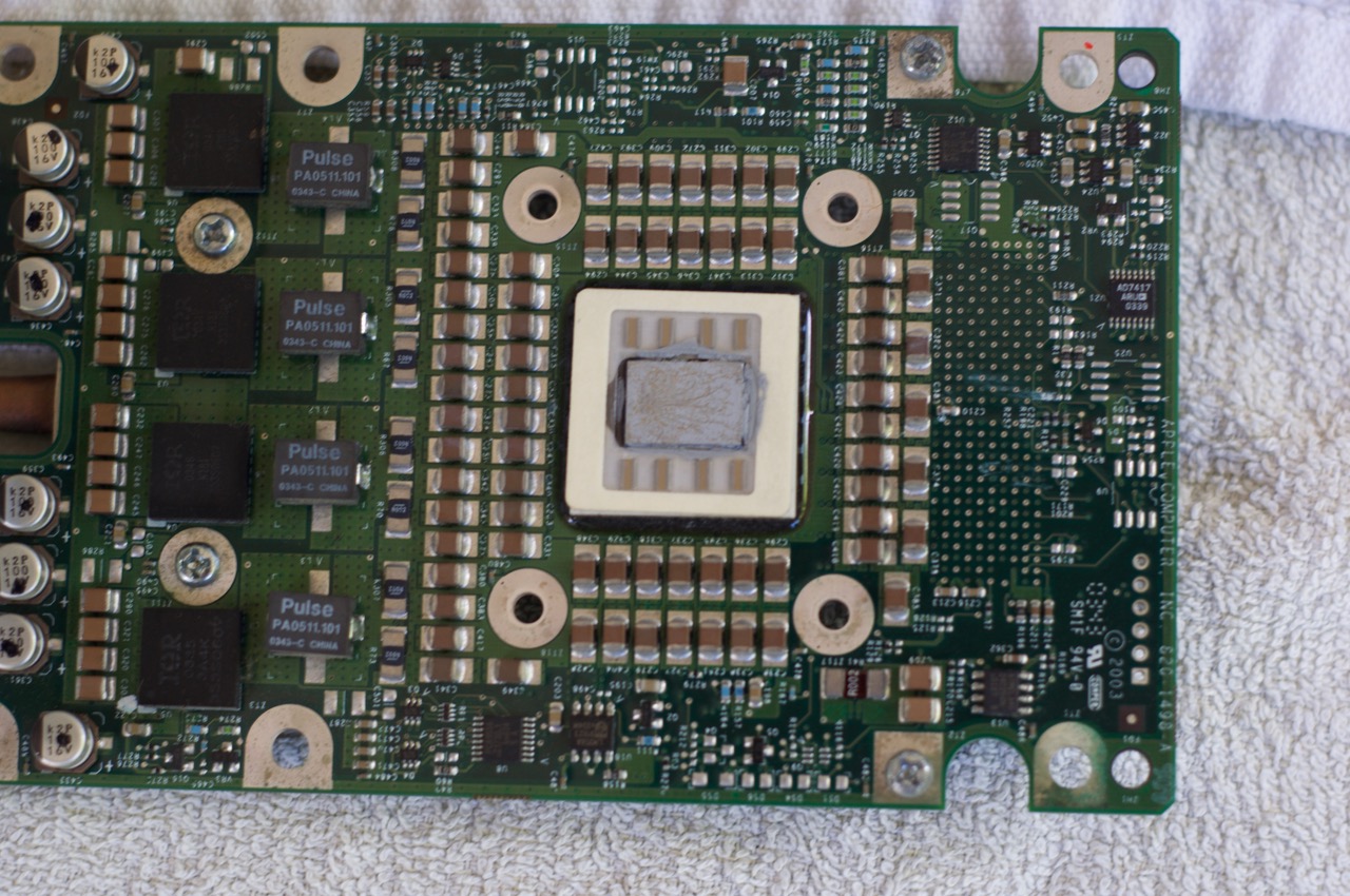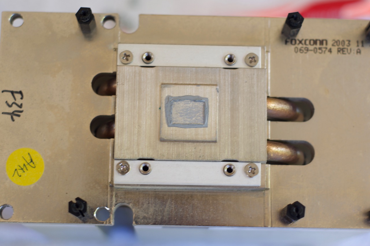 8. The G5 CPU die or IHS (Integrated Heat Spreader) with the cracked and powdered thermal paste.