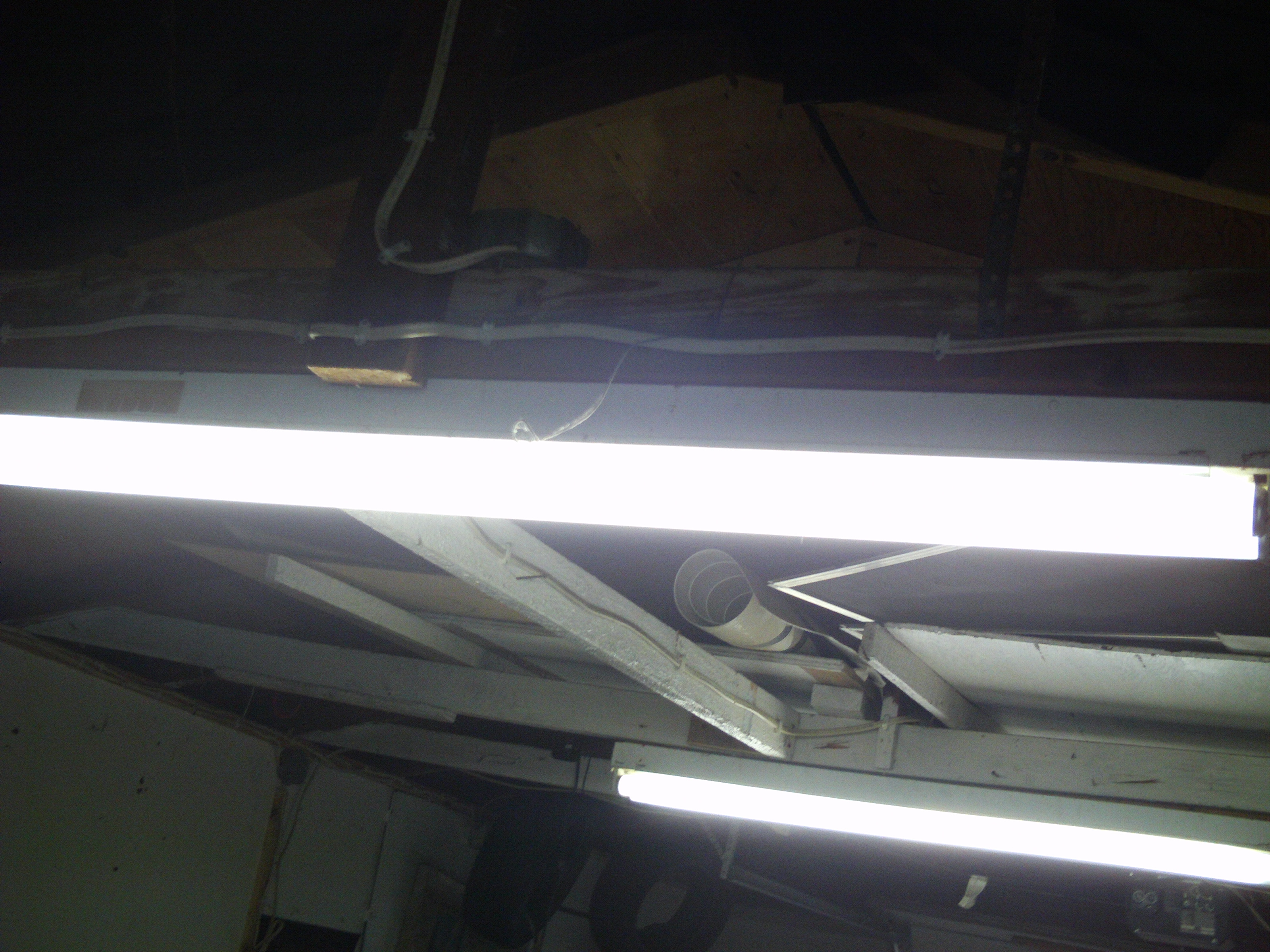 View attachment 558140 Power coming in (green plug)View attachment 558142 Outlet... Brown cord powers lights, green one powers the rest.View attachment 558143 This is the junction box I tapped into for the lights. I removed the line coming in from the breaker box and attached this power cord (brown) in it's place.View attachment 558144 Showing half the lights working like normal (Light switch and all).View attachment 558145