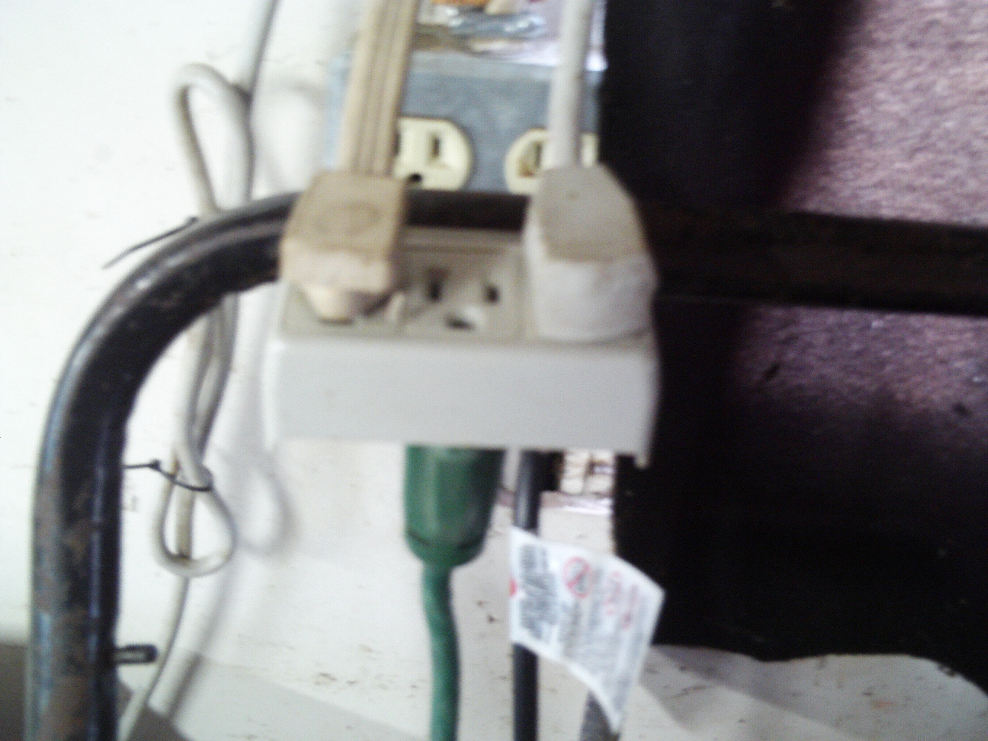 Garage door opener (left) and chest freeze (right) being powed by the other green cord.