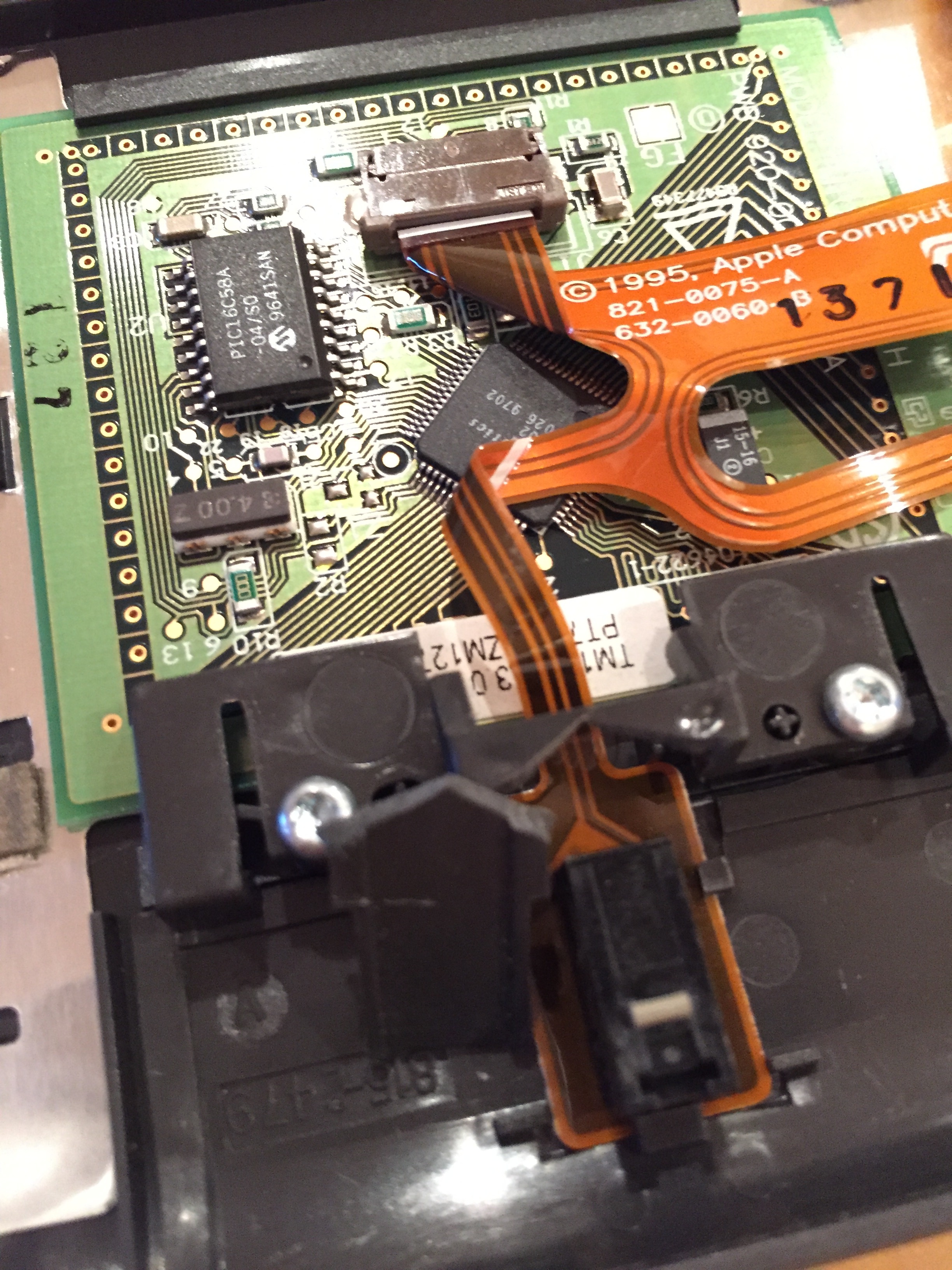 One of the best things you can do is pull off that part of the case and just see what's going on. If you take the keyboard off(take out the three screws on the bottom and you can then lift up the keyboard), you should be able to pop off the trackpad and palmrests as one unit. This is attached to the board by a single ribbon cable, and removing that will allow you to examine it.