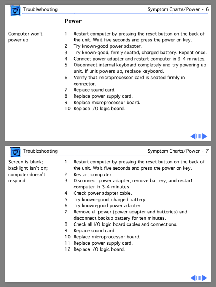 I recently bought PowerBook G3 Pismo 500 MHz. It doesn’t starts, after chime — nothing, internal fan doesn’t spins. I tried pulling PRAM battery and put battery in both sides — nothing. Does anyone have any idea what the problem is?