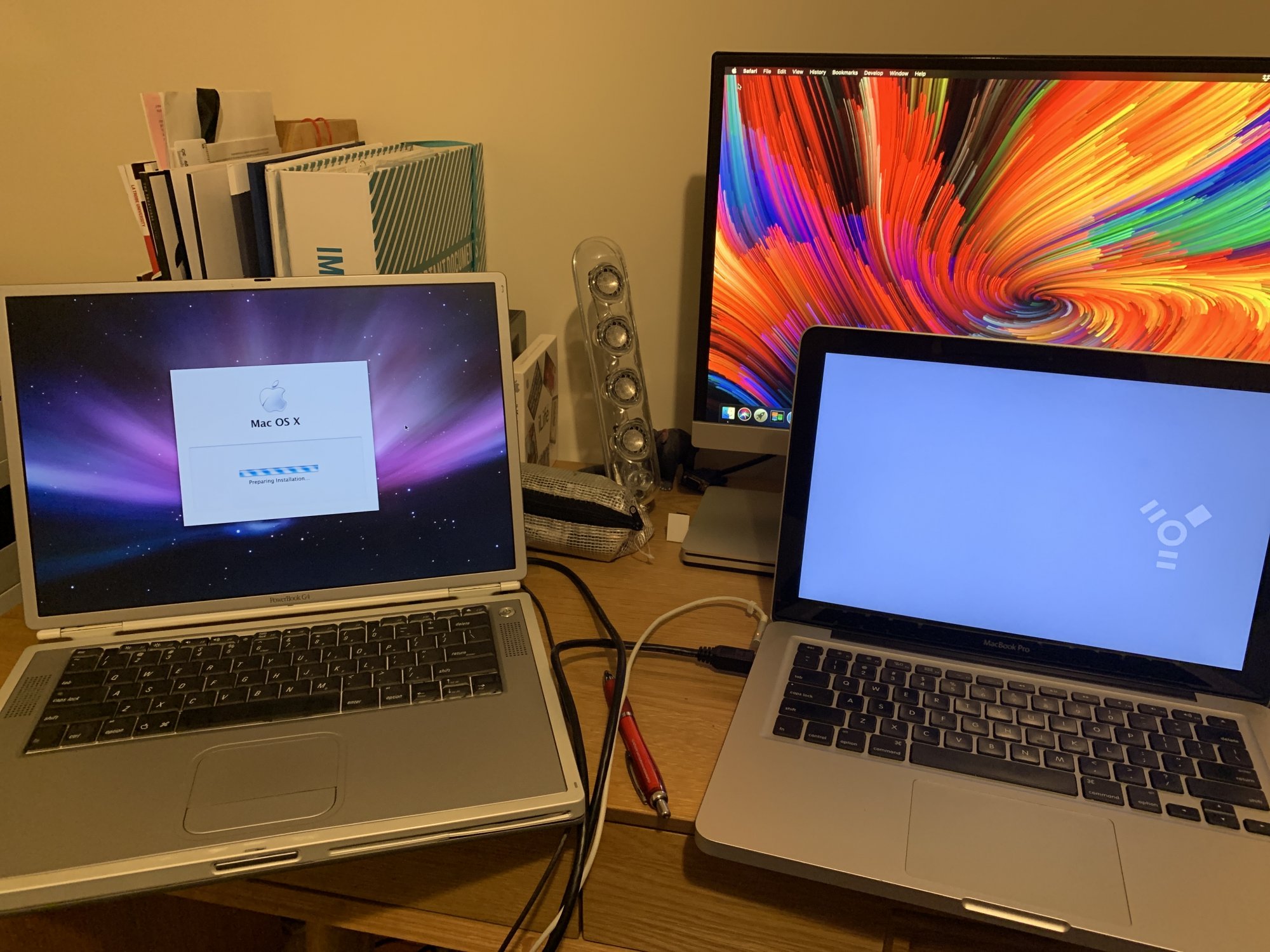 If that doesn’t work for you then you can restore the install .iso onto a USB thumb drive and then drop into Open Firmware on the TiBook to boot from USB via OF command (a quick google search should get you the correct command). I have found older PowerPCs have some compatibility issues with certain USB thumb drives. The rule that has been most reliable for me has been to use older USB 2.0 rated drives and not 3.0/3.1.