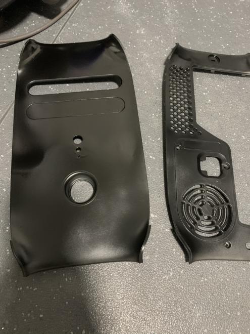 So i started by removing all the powerpc components, removing standoffs and plastic covers, all those are now sanded and started to spray the front panel rear and apple logos in black matt.