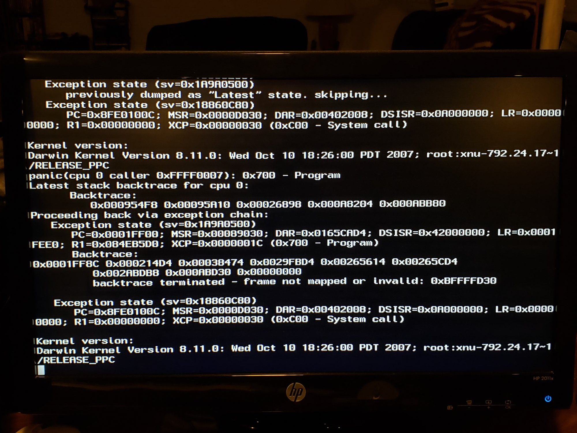 I then had to hard shutdown and boot back into OS 9.1 and finally booted back into 10.4.11 successfully.