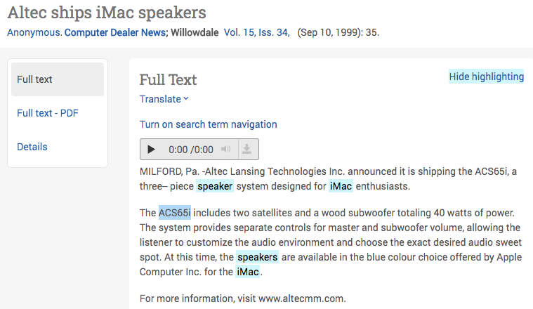 I found an article about Pele, but have subsequently lost it – it was a newspaper article from the local city where Pele was established – they were so proud of their success! And yes, Pele was successful, initially – I believe they were the first to bring a matching iMac speaker to market, beating all the competition.After some online digging I found some more info. It was apparently founded back in '97 and announced the speakers with great fanfare in March 1999, but quit production and shutted its door two years later. During this time they only made and sold the Apolla Speakers in Bondi and fruit colors, Apolla Speakers II in blue/graphite, as well as CD cases (that I can't find pictures of) in green, red and orange.