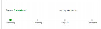 I am still in pre order status as well, I put my order through last night, I'm sure we'll see some movement tomorrow, it still shows to be delivered by 11/16.