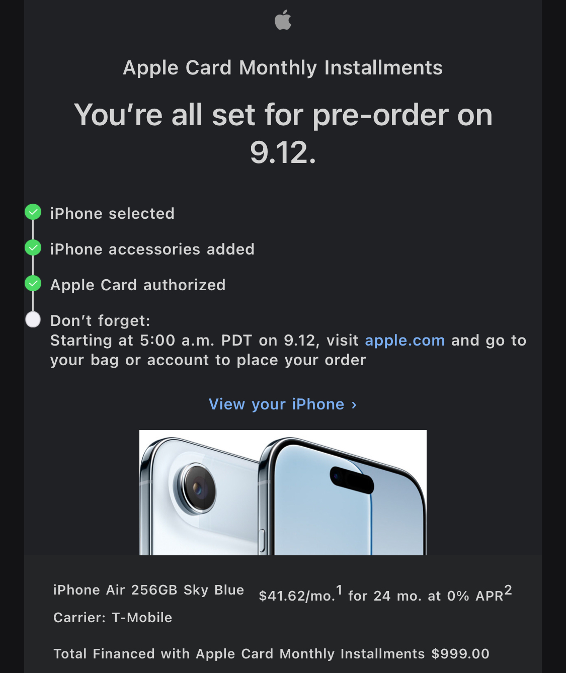 I’m trying to preorder an iPhone 17 with Apple Card Monthly payments and using T-Mobile but I’m not currently a T-Mobile customer. But when I select T-Mobile it asks me to confirm my account and I can’t get past it. Any ideas?