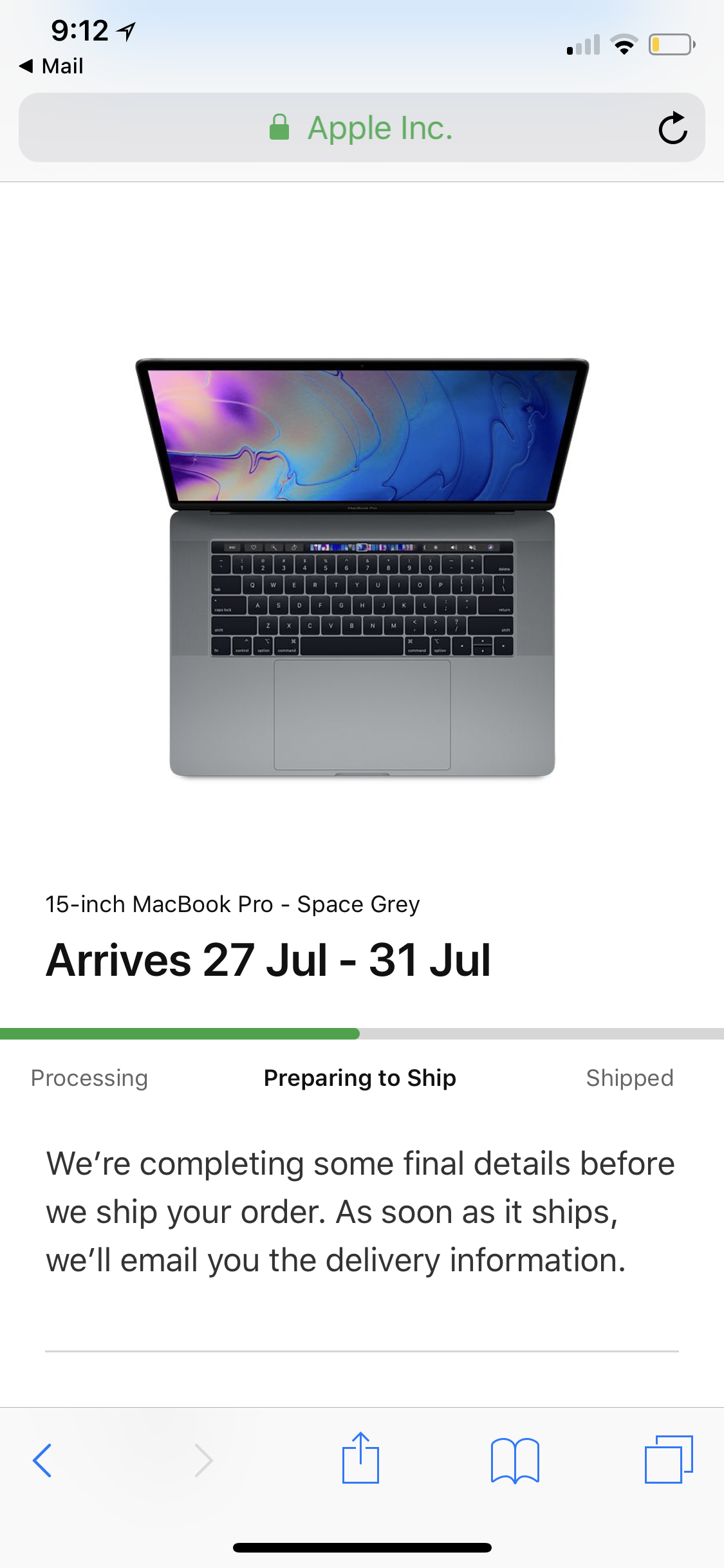 I guess that makes two traveling together - Mine is getting delivered to (Apple store) DE as well: (Ordered (BTO)on 07/16 afternoon EST)