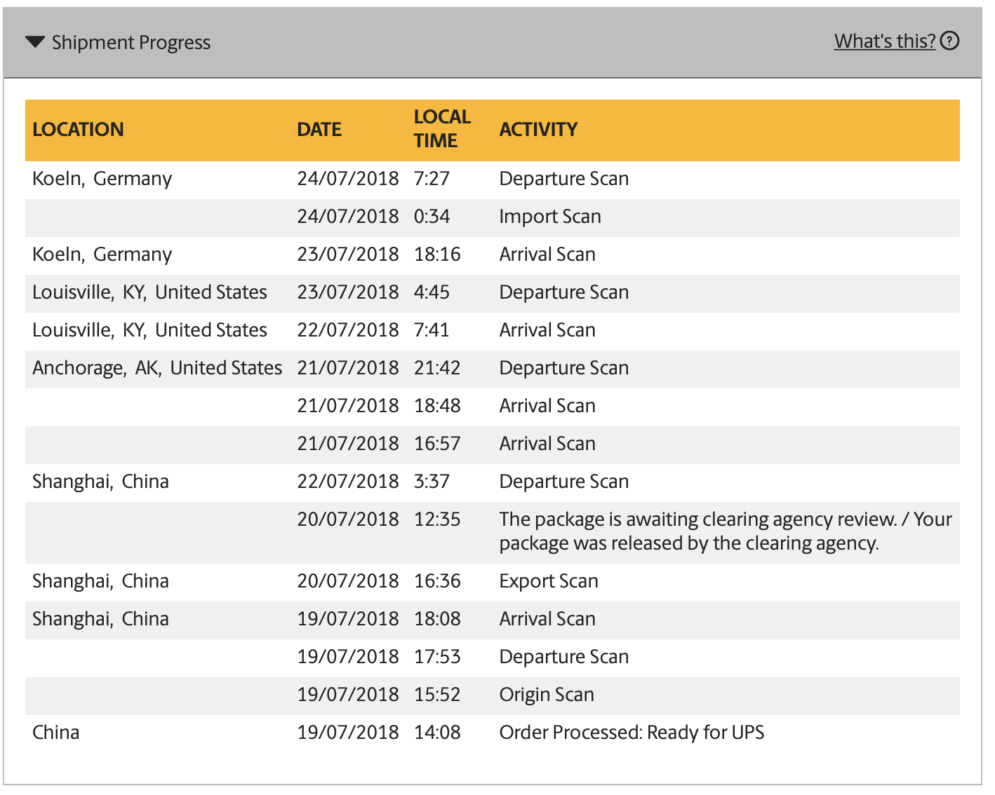 I just got a departure scan from Louisville, but the only UPS flight I see from Louisville is to Portland. Hmm, maybe it is being ground transported and not flying? I'm getting it delivered to Delaware