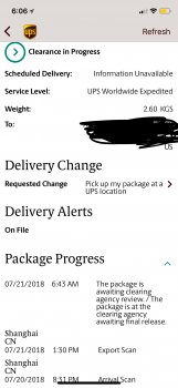 07/22/2018 7:17 A.M. The package is awaiting clearing agency review. / Your package was released by the clearing agency.