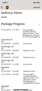 Expected scan: "Arrival Scan" Louisville, KY 1:35 AM - 2:15 AM EST