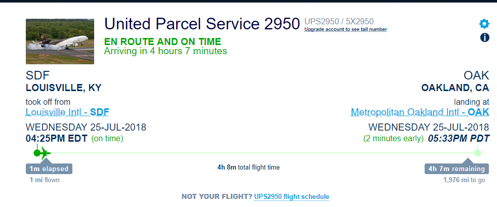The flight to OAK has taken off, UPS 2950! The plane's gonna land by the time I get off work.