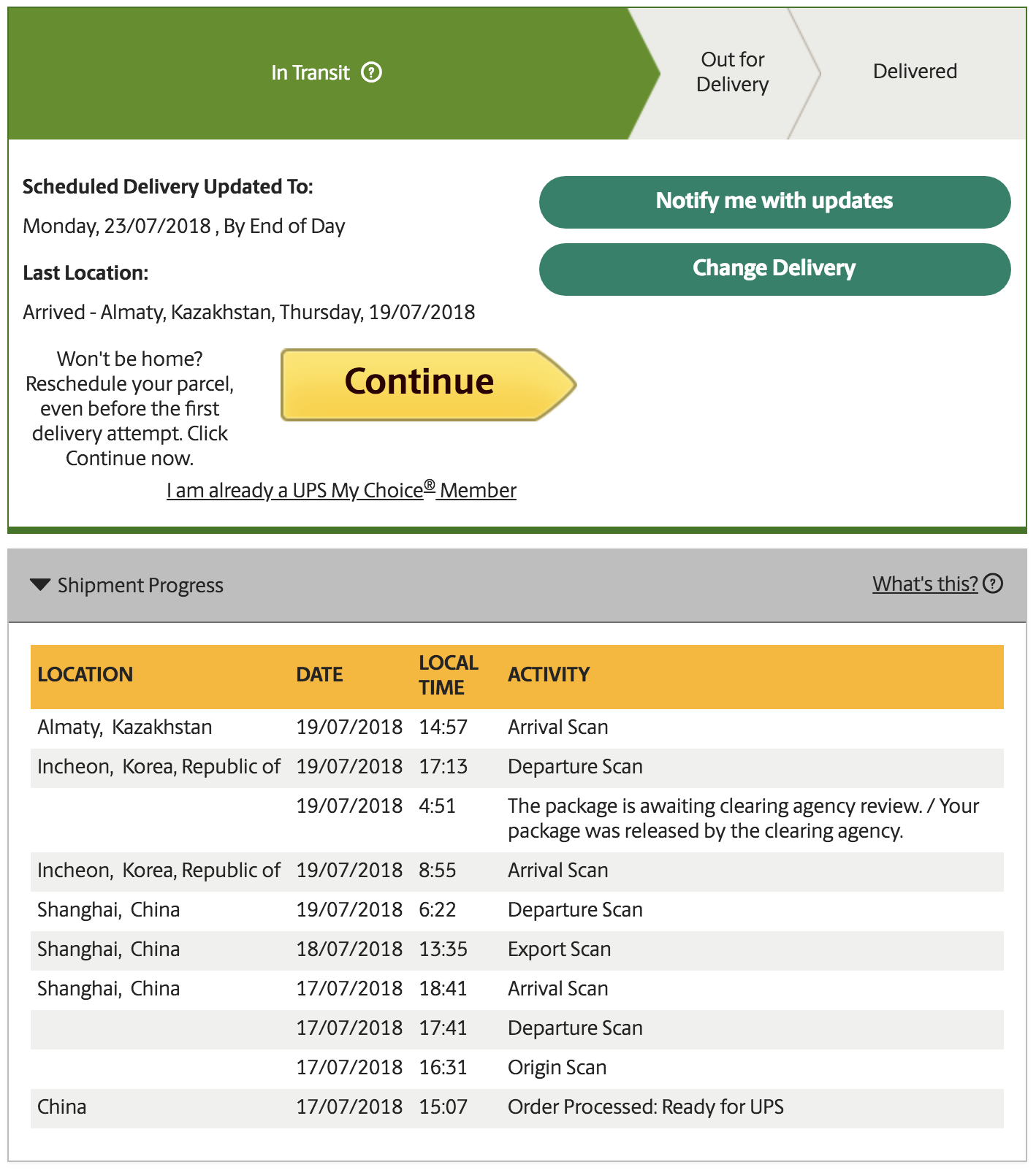 How you track it? UPS reference number?Mine is currently in Kazakhstan!!! Delivery date is Monday