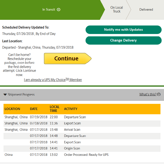 China 07/17/2018 13:02 Order Processed: Ready for UPS