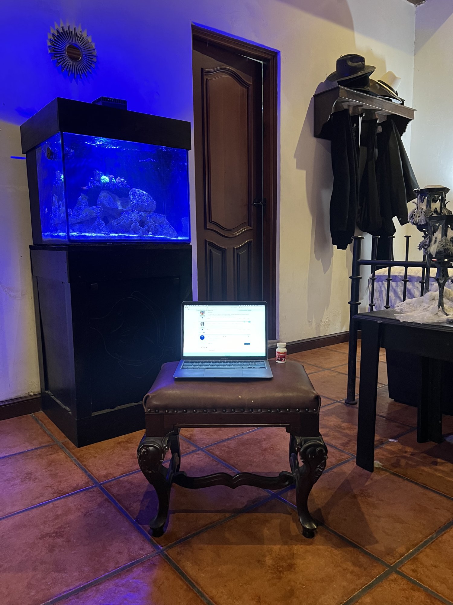 Some have stated that the focal distance is 2 meters. Here's a picture of my laptop 2 meters from me: