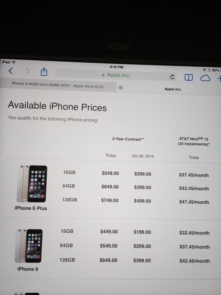 Based on this pic does it mean that the today price is buying the phone outright? If so then haven't prices gotten down from previous iPhones? I've been with AT&T for 1 year now. Are these then the 1 year upgrade price available to me? I was planning on using next to get the iPhone 6. How come on apple it mentions and gives me option to get the phone via next which I thought I could only do directly with AT&T...so I will be able to use next buying from apple? Thank you for the help.