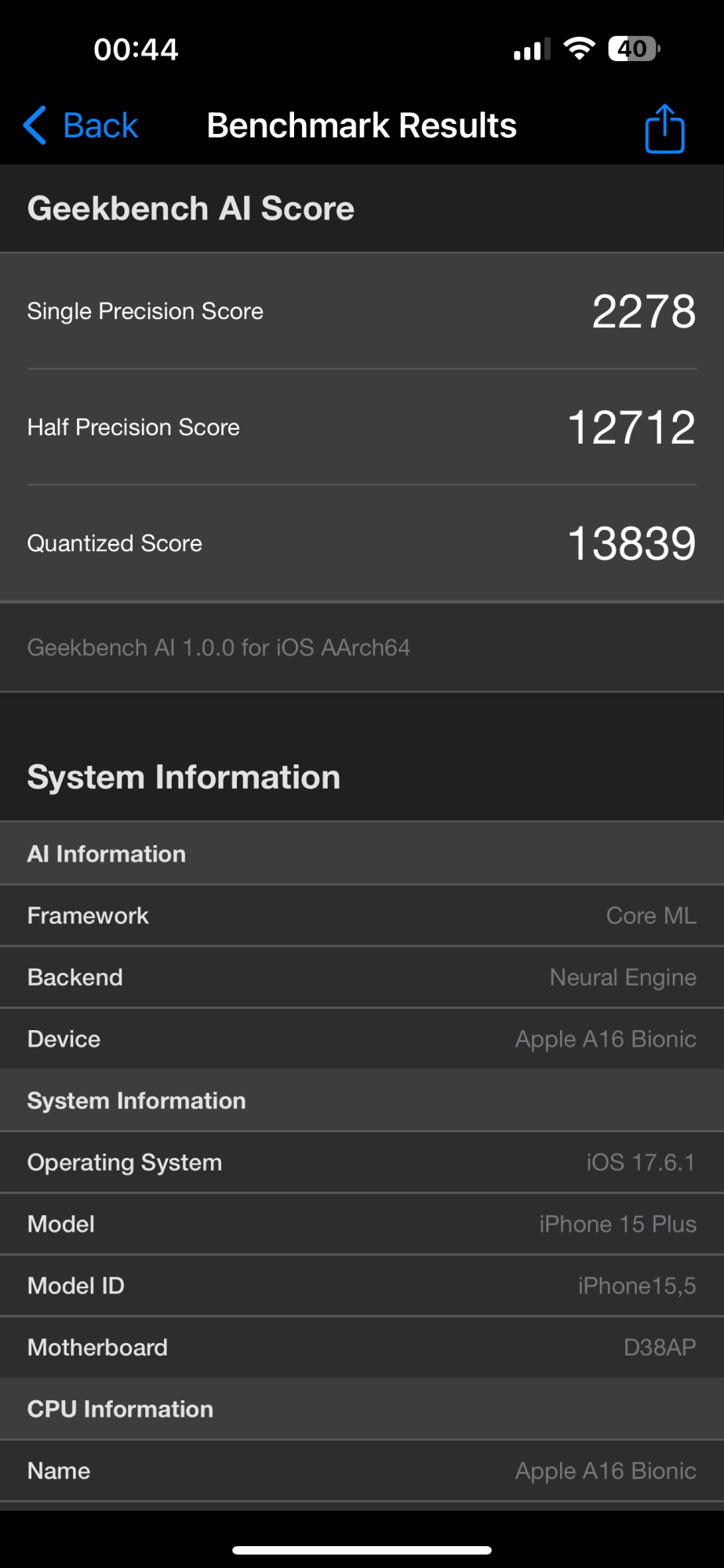 You could maybe write an alternative benchmark that calls into Apple APIs for some of the tasks above (eg image classification, pose detection, translation, etc). The results might not be *directly* comparable with the benchmark (which uses standard open models, so that more-or-less the same test is being run on all platforms) but the result might be VERY interesting in terms of comparing Apple's "systemwide" performance, not just the HW but also code optimized to the hardware.