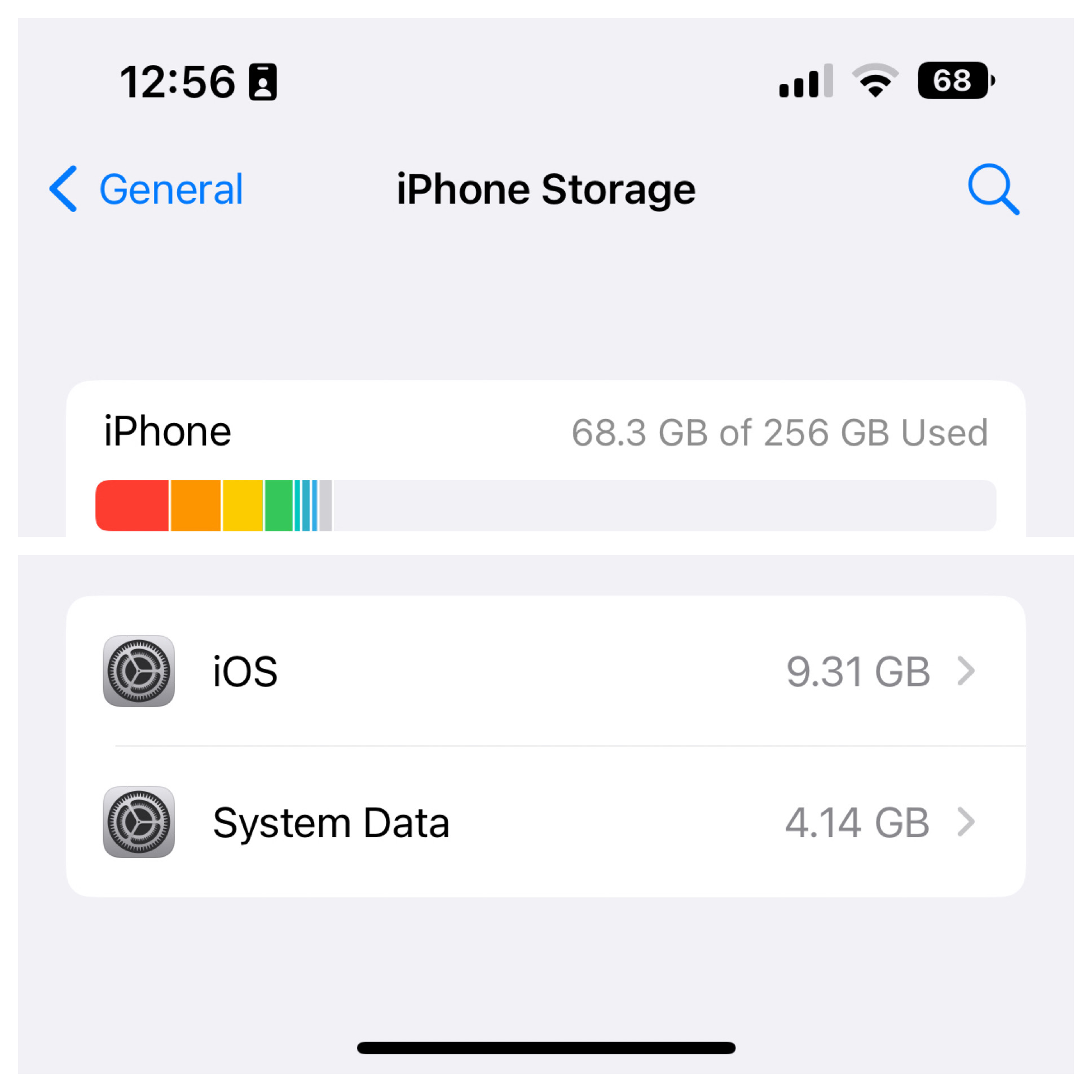 When I shoot video with pro res the file size looks like it gets added to system data. That maybe correct but when I go to delete the file the system data doesn’t update til I reboot my phone. Attached a few images to backup the point.