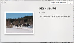 I noticed that the thumbnails of JPGs both on my desktop and when viewing folders sometimes have a white frame around it, sometimes don't. When they do, quicklook won't show them properly.