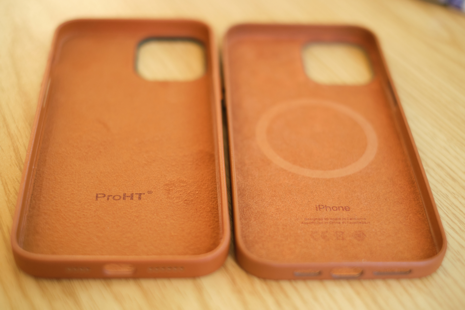 So, after finding out that Home Depot, of all the places, has leather cases for iPhone 12 variants, I decided to take a chance to order one for my 12 Pro Max. These are ProHT brand and, with Home Depot's generous return policy, it was worth trying. Build-quality is pretty similar to Apple's official leather cases. It does feel a bit more slippery than Apple's version. Leather smell is there but only time will tell if these are real leather. Buttons are a bit tight to push; however, they are pretty good. Fit seems very good, except for a very slight gap at the bottom.