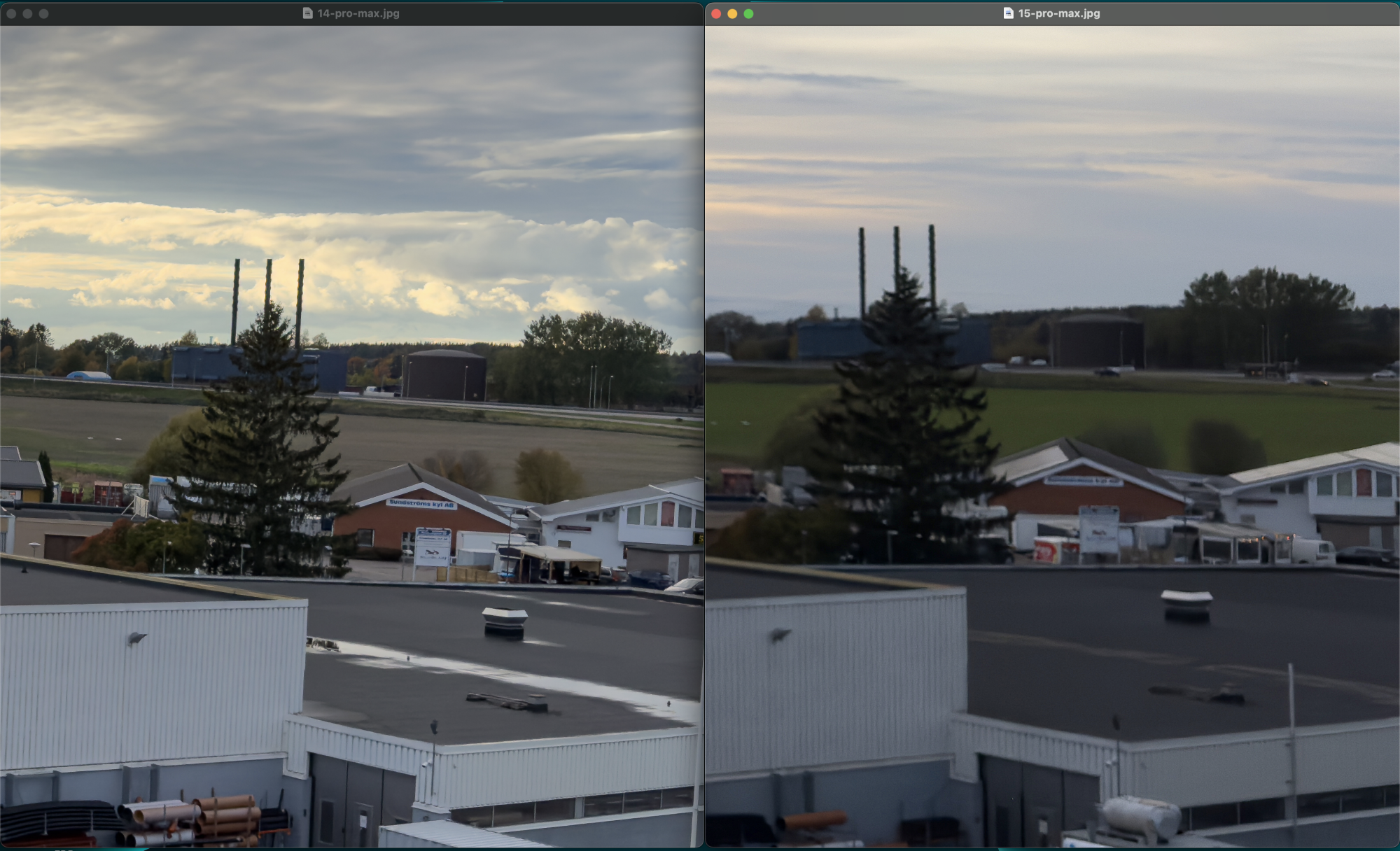 Here is a comparison between 14 Pro Max (left) and 15 Pro Max (right), both ProRAW 48.