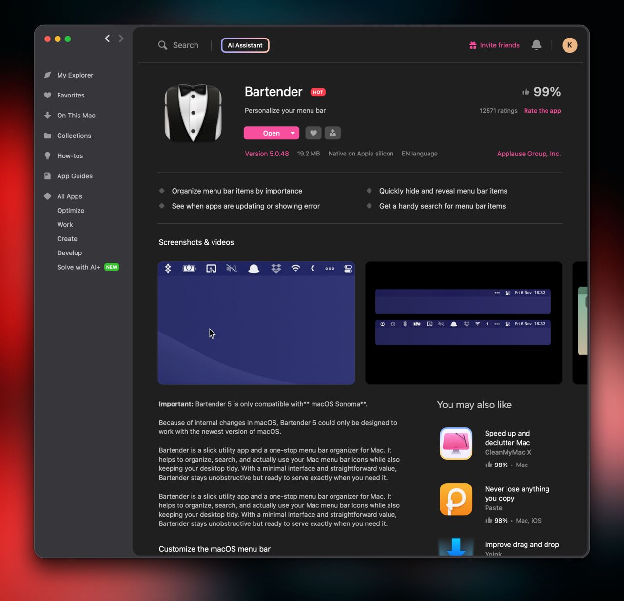 And hope that version remains backwards compatible with macOS 15... that's been problematic in the past - the last two versions of macOS required updates to Bartender to make it work.Yikes! That doesn't really help. I've been following him for many years now, and even get RSS feeds from his site.. I'm at a loss. At least I can keep the prior version installed from before it was sold! lol