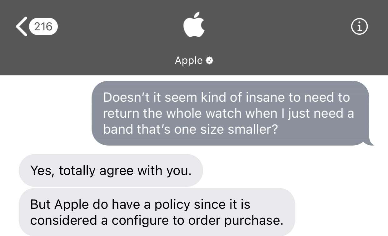 Then to have to return the watch and band if you get it wrong? That seems like a lot of effort to correct a simple mistake.