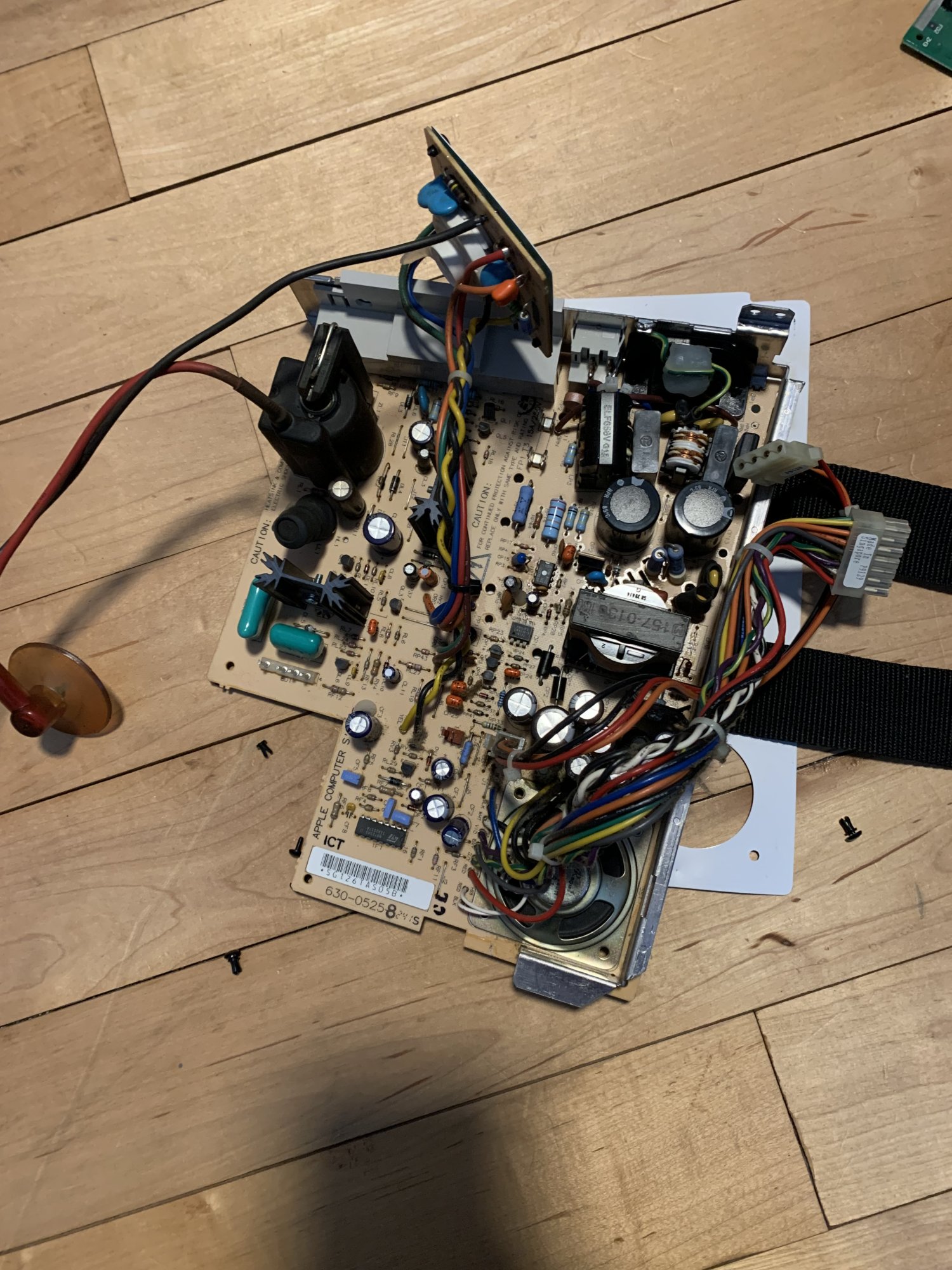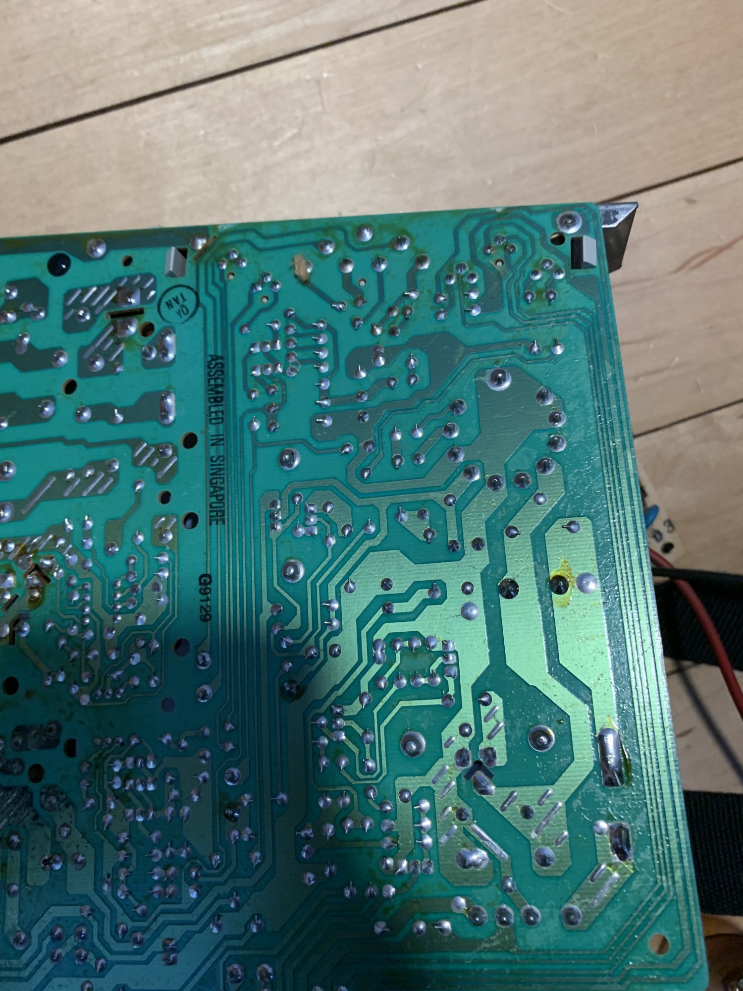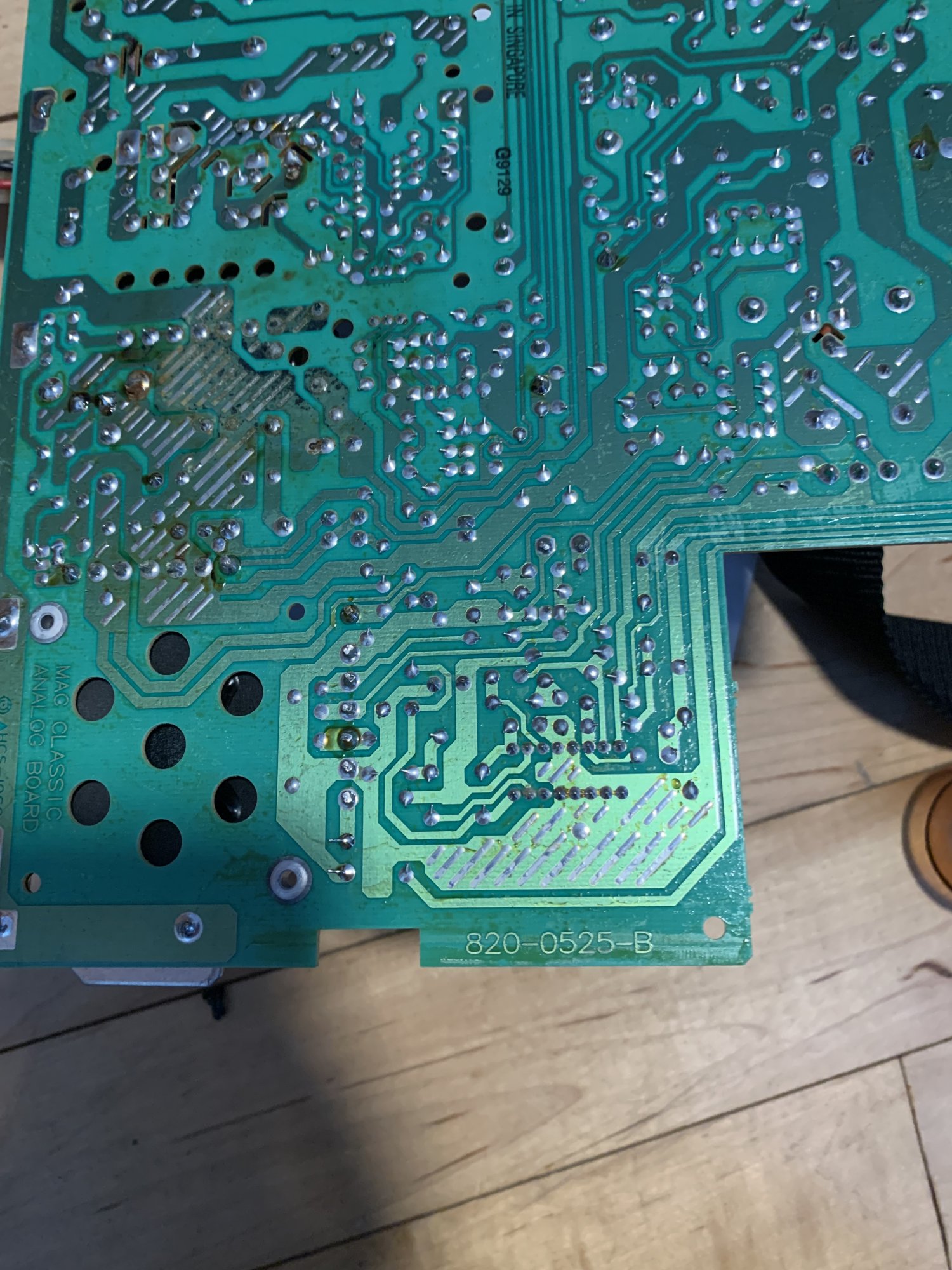 I am not an expert on this in the slightest, but it looks like a cap or two barfed all over the board. If I were you, I would remove the offending caps, scrub the board with vinegar and then IPA, and then use a volt meter to make sure the traces are still good. If the traces are OK, then the board is probably salvageable. Would I attempt to do this myself, yeah, maybe after watching a few YouTube videos, specifically Adrian’s Digital Basement. Would I succeed? Eh, probably about a 50-50 chance. Someone with more experience should be able to save it, depending on the state of the traces on the board.