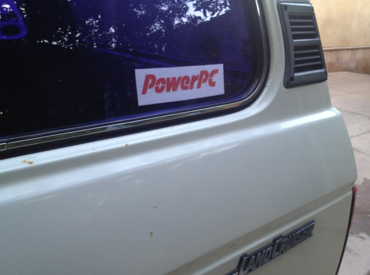 Anyone ever seen a car with a PowerPC sticker on it? Whatever my first car is, I am definitely going to have one made for it!