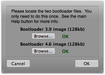 Click the browse button for the bootloader 4.6 image and select BL-46.bin file from your Desktop.