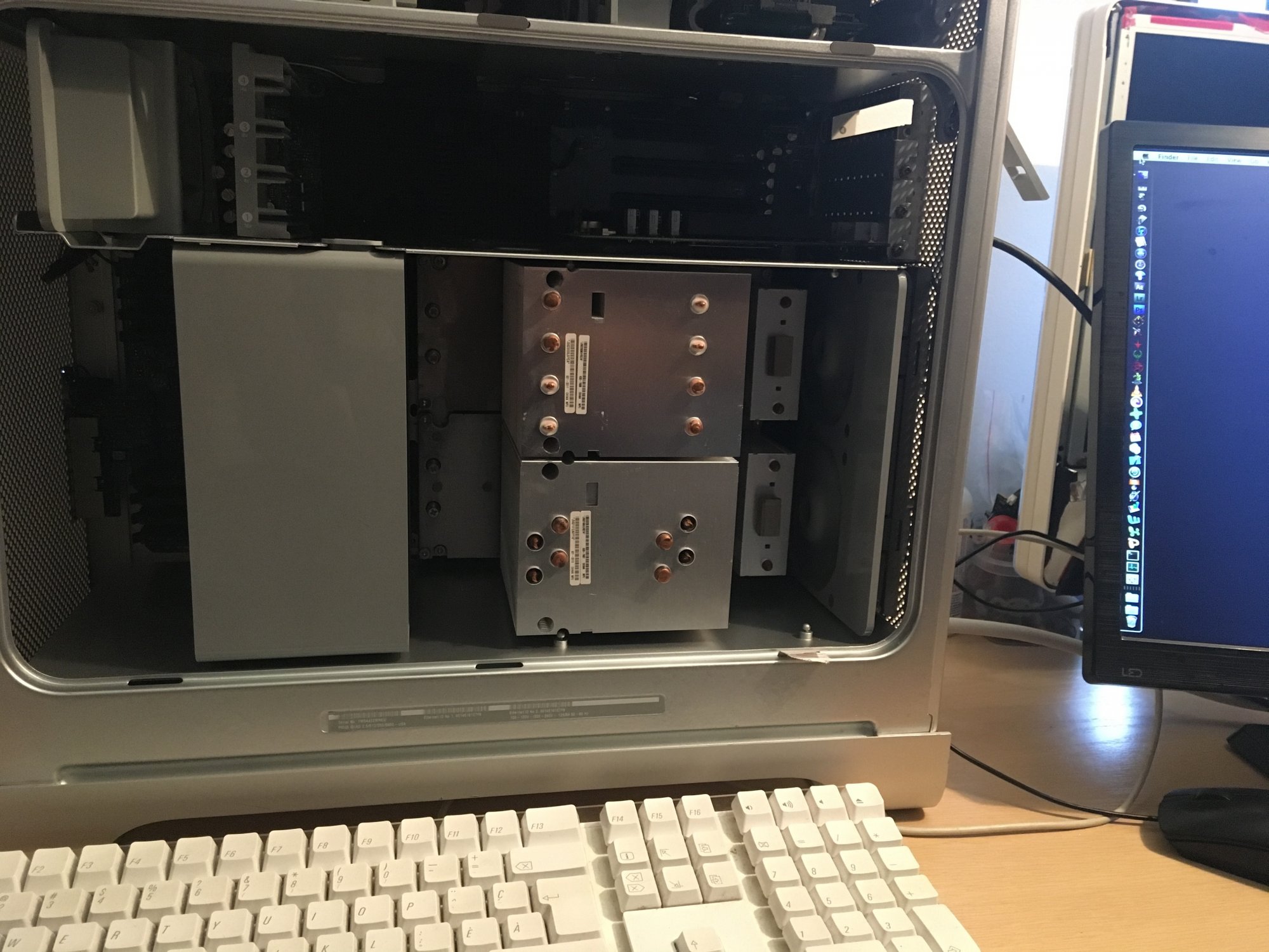It first started when I bought a quad core logic board to fix my broken dual core g5. Then I said to myself: wait a minute, I could convert my dual to quad! Then soon, I bought a quad with a broken lcs. Then I said to myself: wait a minute, I coud convert my quad to air cooling !!