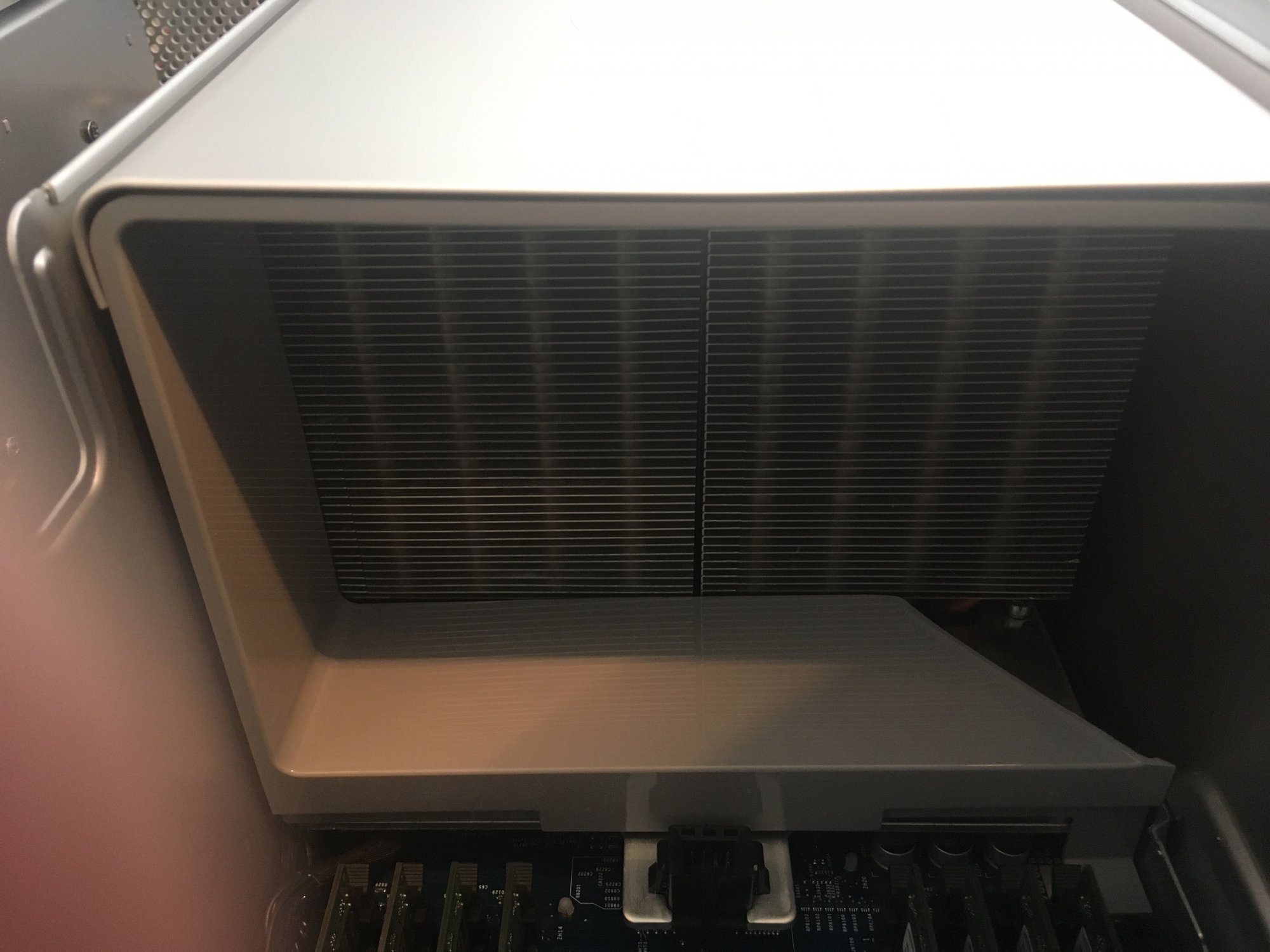 The red line represent what I'm modifying(cutting) from the original heat sink to fit two of them side by side. The support bar already have all the thread needed (thx apple, I'm sure you tried but made the heat sink wider to prevent user to make a air cool swap. Just look at the casting you'l understand what I meant)