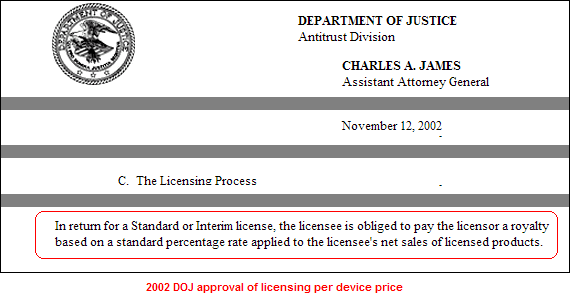 Last, but not least, the DOJ ruled long ago that licensing by end product cost was okay: