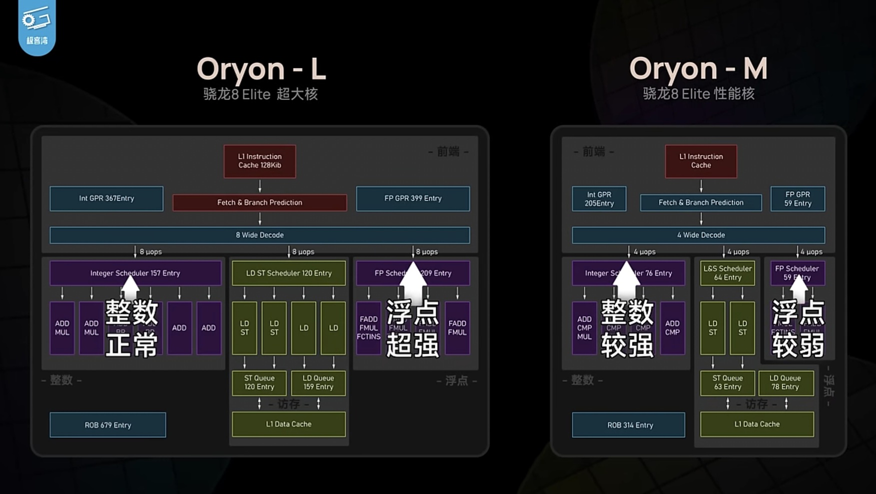 Compared to Oryon (X Elite), Oryon-L (8 Elite) has several microarchitectural differences;