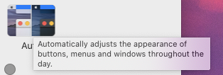 So there is an automatic setting to change light and dark mode like iOS. With iOS though you can set it so that it comes on depending on whether its day and night. Yet from what I can see on macOS it can only be linked with night shift. This is annoying because being winter the nights start around 4pm and I don't want the yellow screen of night shift until later (I have it set to 22:30 on my iPhone). Is there a way to get it like it is on iOS?