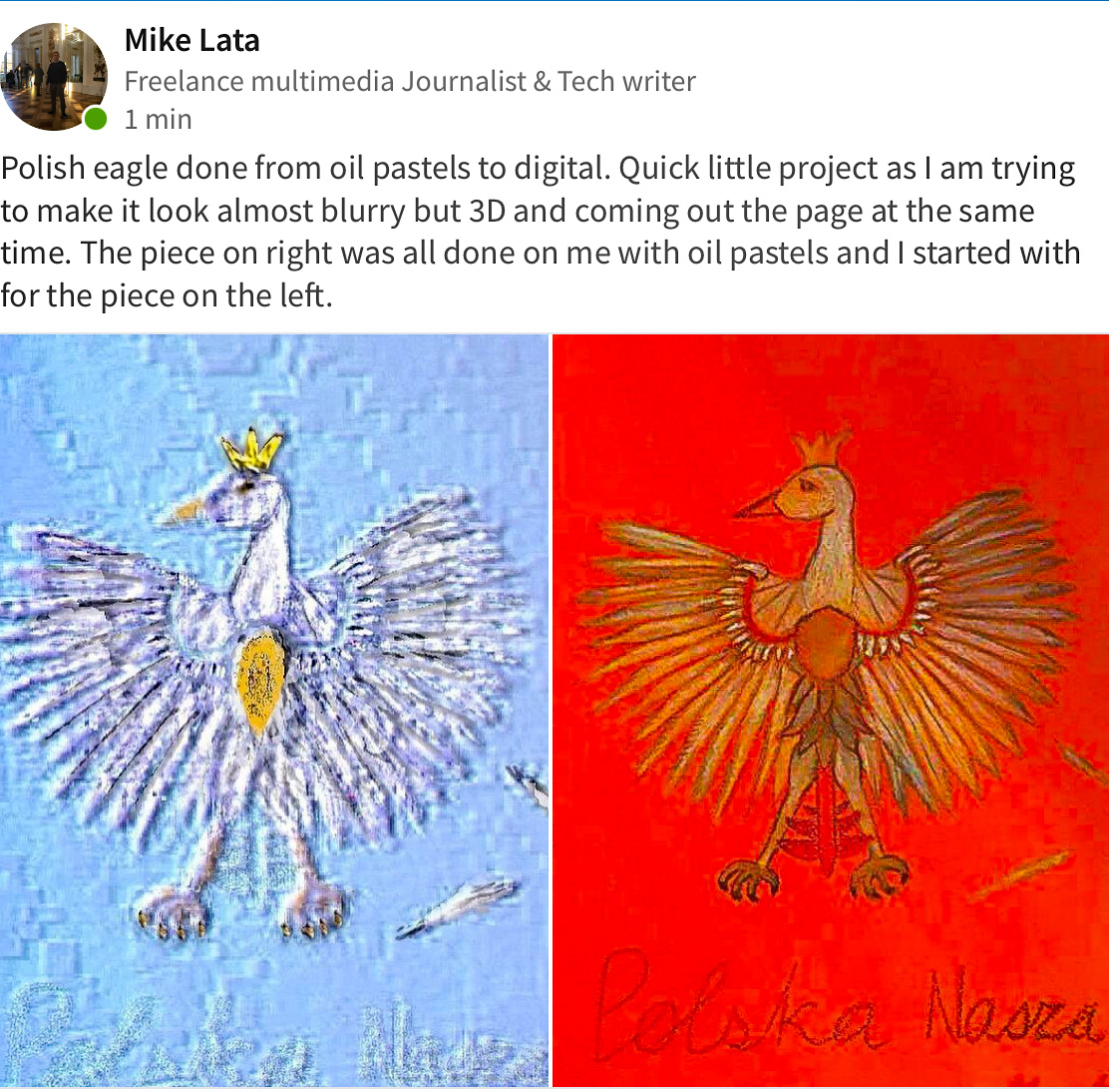 I fail to see the point. First, it's a just an infantile drawing (please check the shape of the beak) reminiscent of a chicken in process of being feathered, second - so you pressed "emboss" and played with blue saturation for a while. Kinda insulting for the Polish coat of arms.