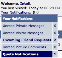 You will only see what Intell posted a picture of when you have an available Quote Notification. When there are no new notifications, all you see is Private Messages.