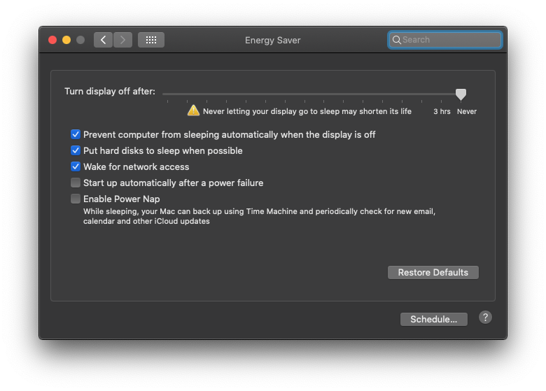 My current energy saving settings look like this, sorry for the German: