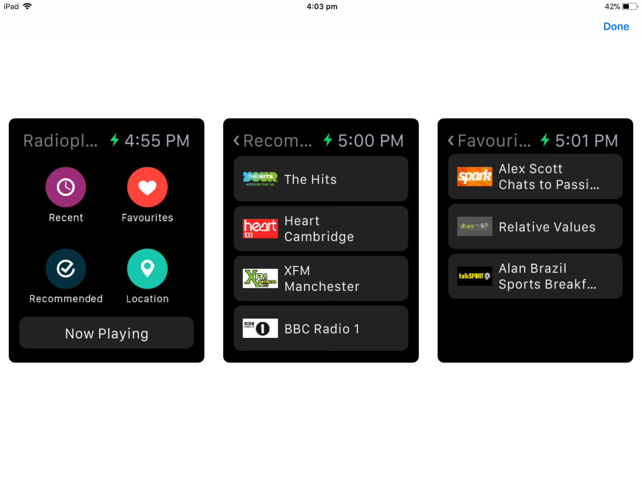 You could try the Radioplayer app for iPhone and Watch. If the Watch is connected to a known Wi-fi network it should work. The app is free so worth a try.