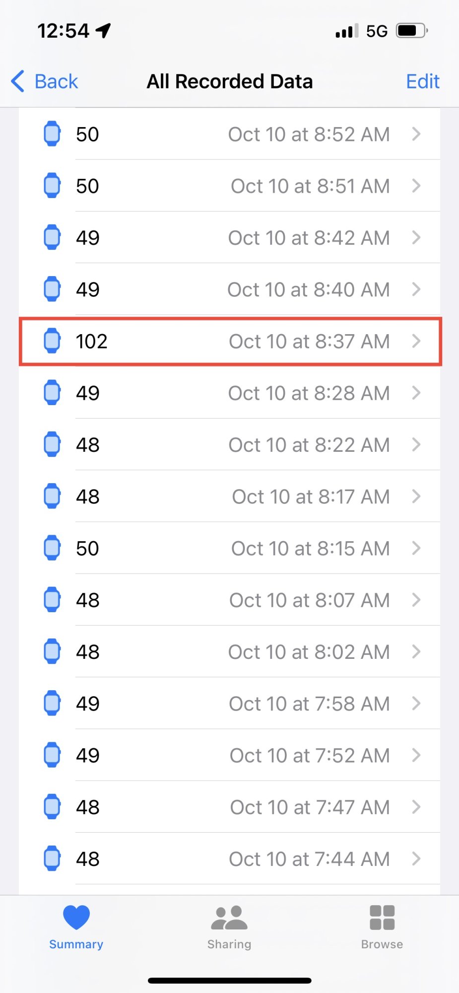 I recently noticed that, almost every night, my Apple Watch records heart rate spikes while I'm sleeping. It will show a reading around 50bpm then shoot up to 100bpm then back to 50bpm - a few times each night. I tried using a new Fitbit (that has continuous heart rate tracking) on another wrist and it showed no spikes. I am using an Apple Watch Series 4, so I wonder if there is something wrong with the sensors on my watch since it's an older device or if some kind of software glitch causing these weird spikes? Has anyone else noticed this?