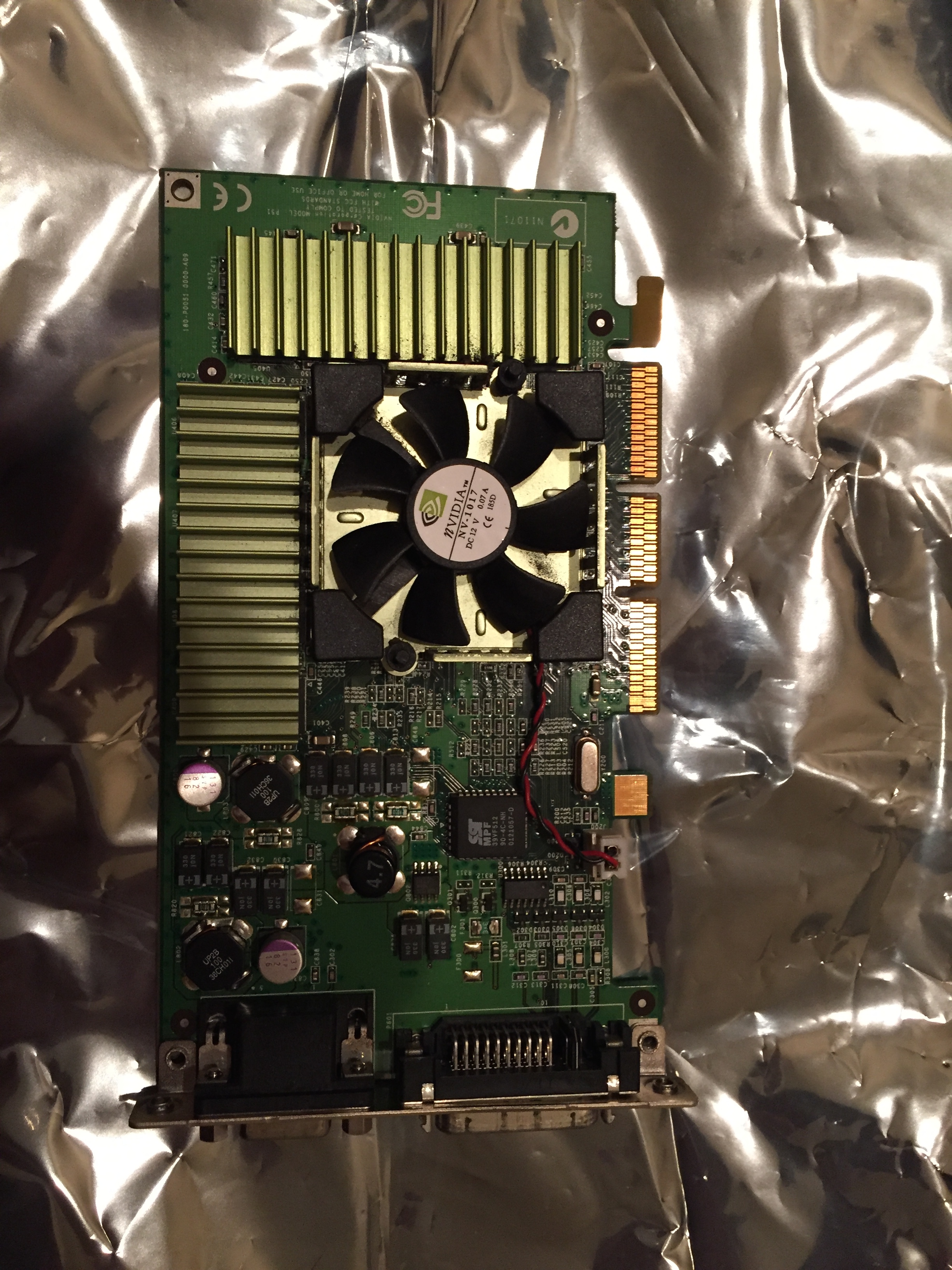As folks who have worked on Cubes know, the selection of video cards that will physically fit without modifications to either the card or the computer is quite limited. Most Cubes shipped with a Rage 128, which is a decent card in OS 9 and earlier versions of OS X but starts choking somewhere around 10.4. One popular upgrade is the GeForce 2MX, which fits the same faceplate as the Rage 128 but performs somewhat better.
