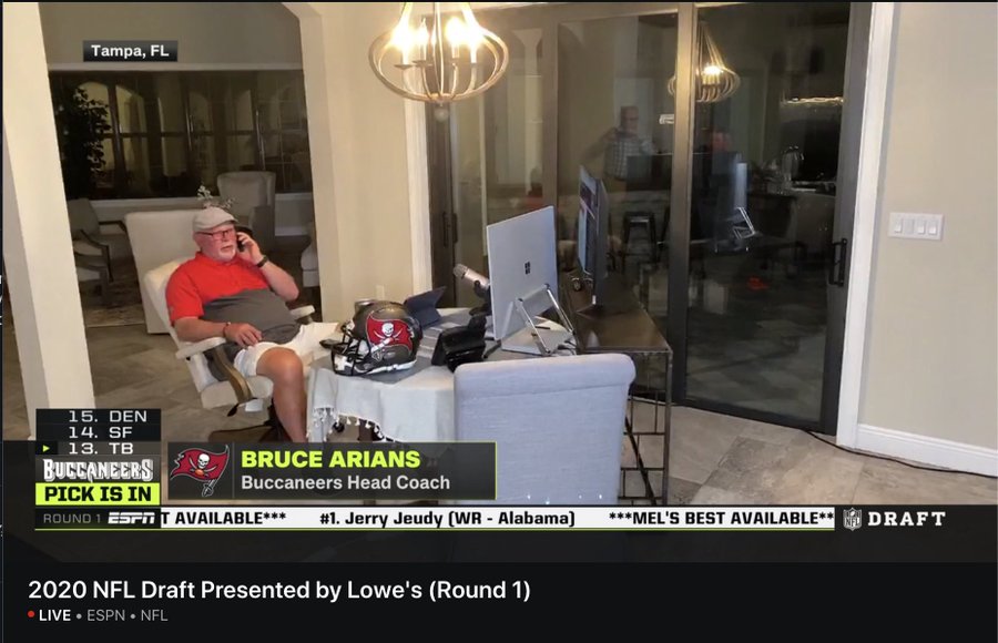 Oh, and one last look back to the NFL draft: Bruce Arians lounging on his patio (probably facing the beach 😏 ) while choosing players. Must be nice. A