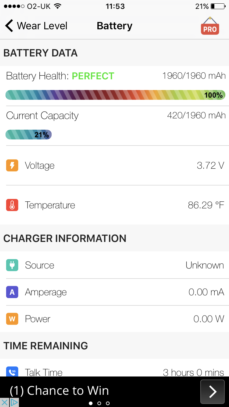 With that being said, its not as accurate as Coconut Battery for Mac. Coconut shows the real time battery health down to the single digits. Battery Life shows battery health per percent. iPhone 7Plus has a 2900mAh battery. Coconut will show 2851mAh (98.3%), Battery Life will show 2842mAh (98%). It does it in larger blocks because it cannot access the full information. So its not as accurate. Current charge is also broken on these apps. The apps are using iOS' battery meter to determine current mAh of the device, not the battery itself. Remember, the battery meter on iOS is not 100% calibrated to the battery itself.