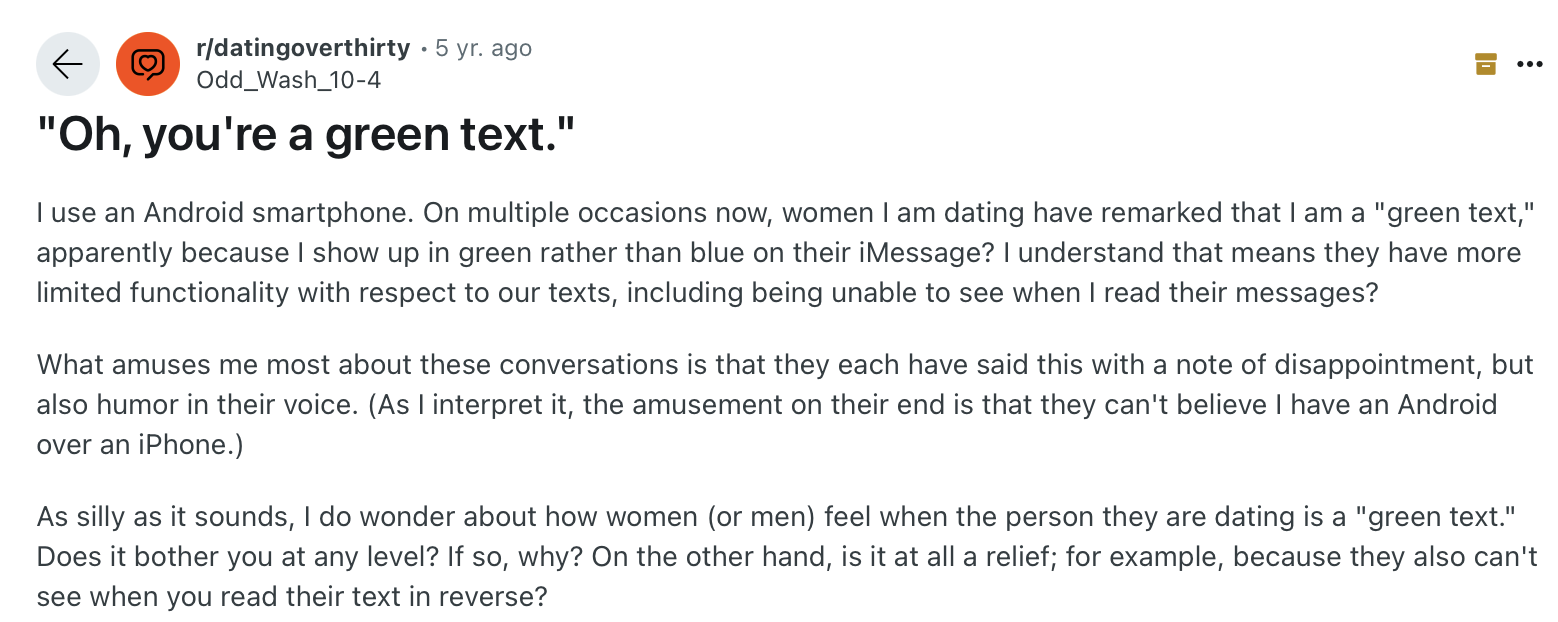 It does, SMS is considered to be unsafe and are being used widely. There personal information, MFA/2FA, activation codes, ticket info etc all being sent in clear text. Sure, not saying Google are the good guys and aren't harvesting information about you as a user, but they are less likely to be the ones wanting to hack into your account.So 10,000 people at google can read my post, but you're worried about another 10 or so while my message hops through the internet. Not sure that matters except to the uninformed.