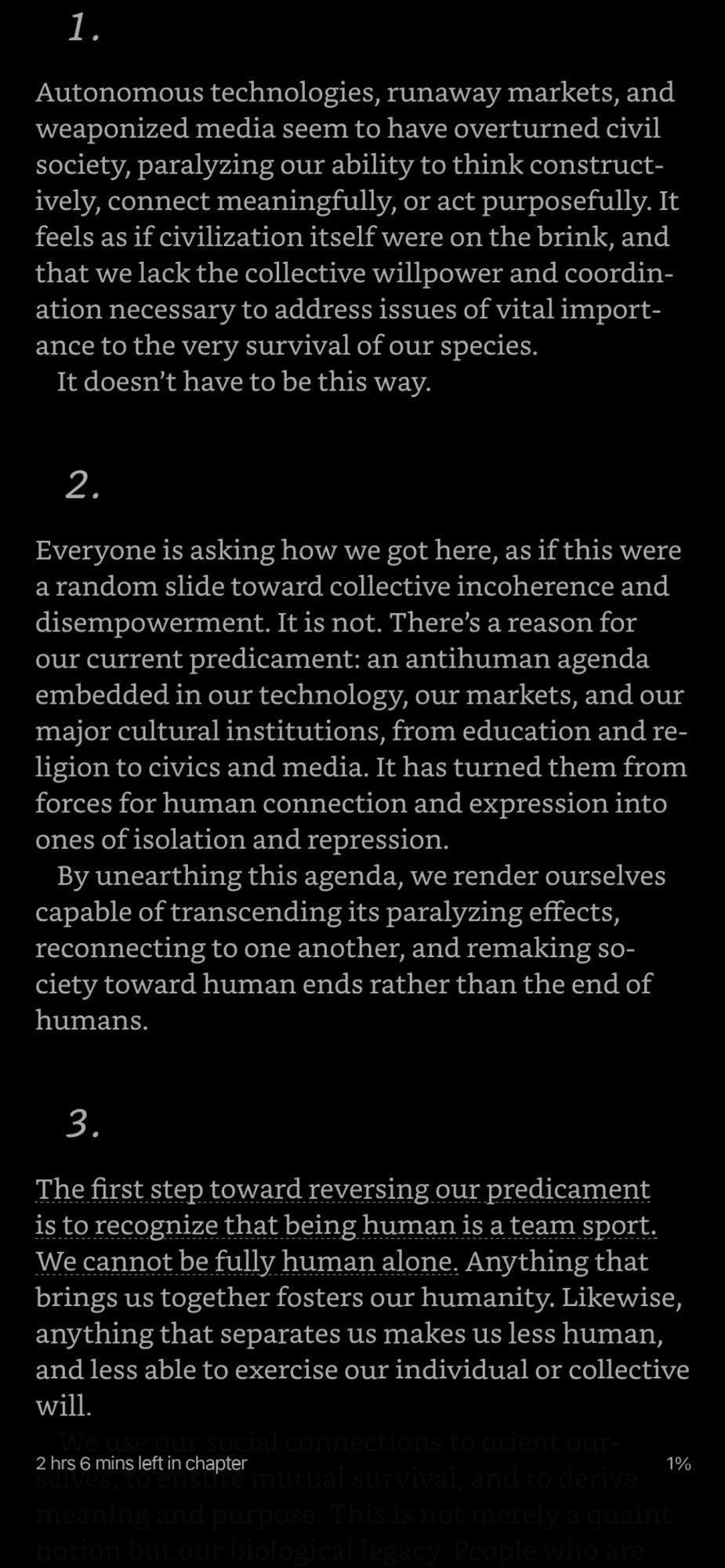 Reading on iPhone: I've read 2 books on my iPhone so far. I read with a black background and brightness way down - I find this helps reduce eye strain but holding the phone for >1 hour gets a little tiring. I prefer portrait mode but the only way I can read comfortably in Apple Books is landscape mode (due to screen utilization).