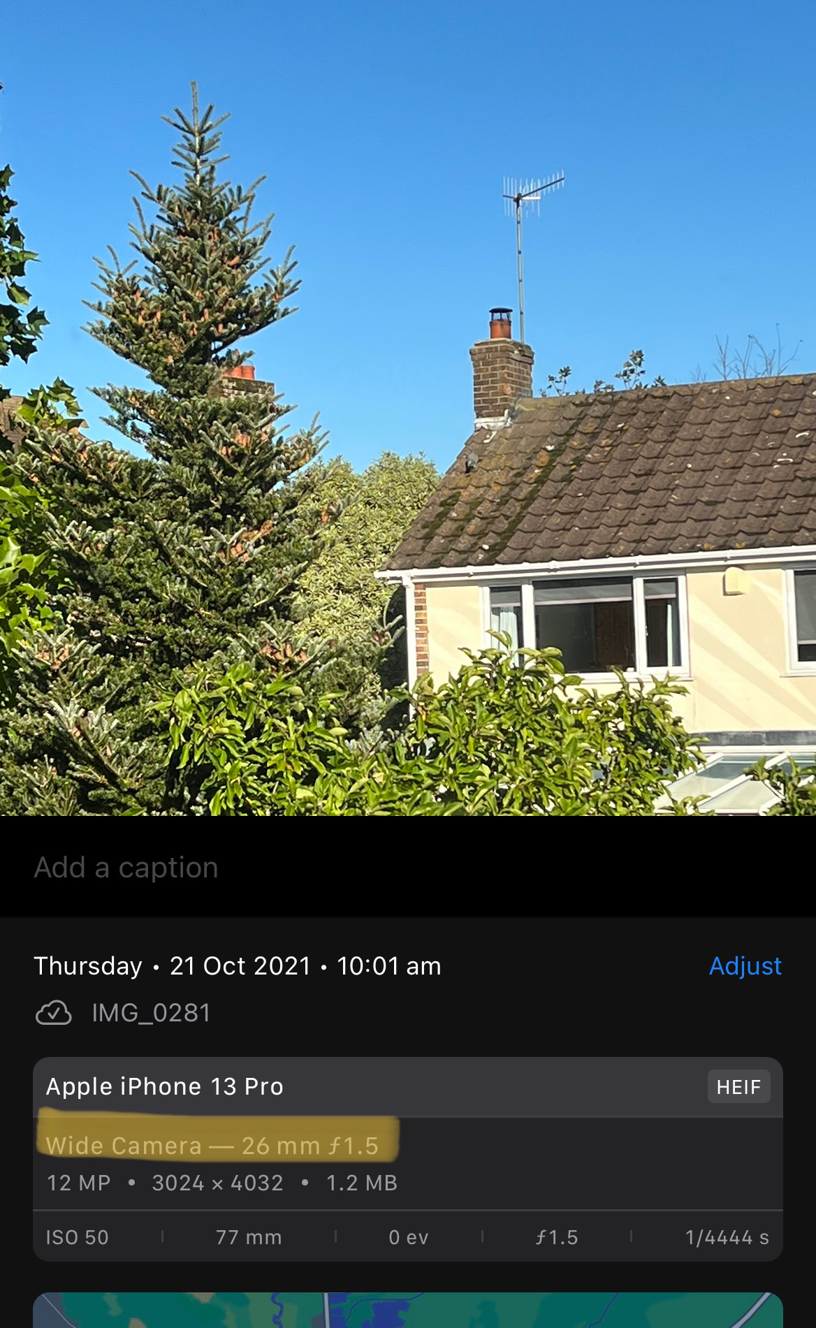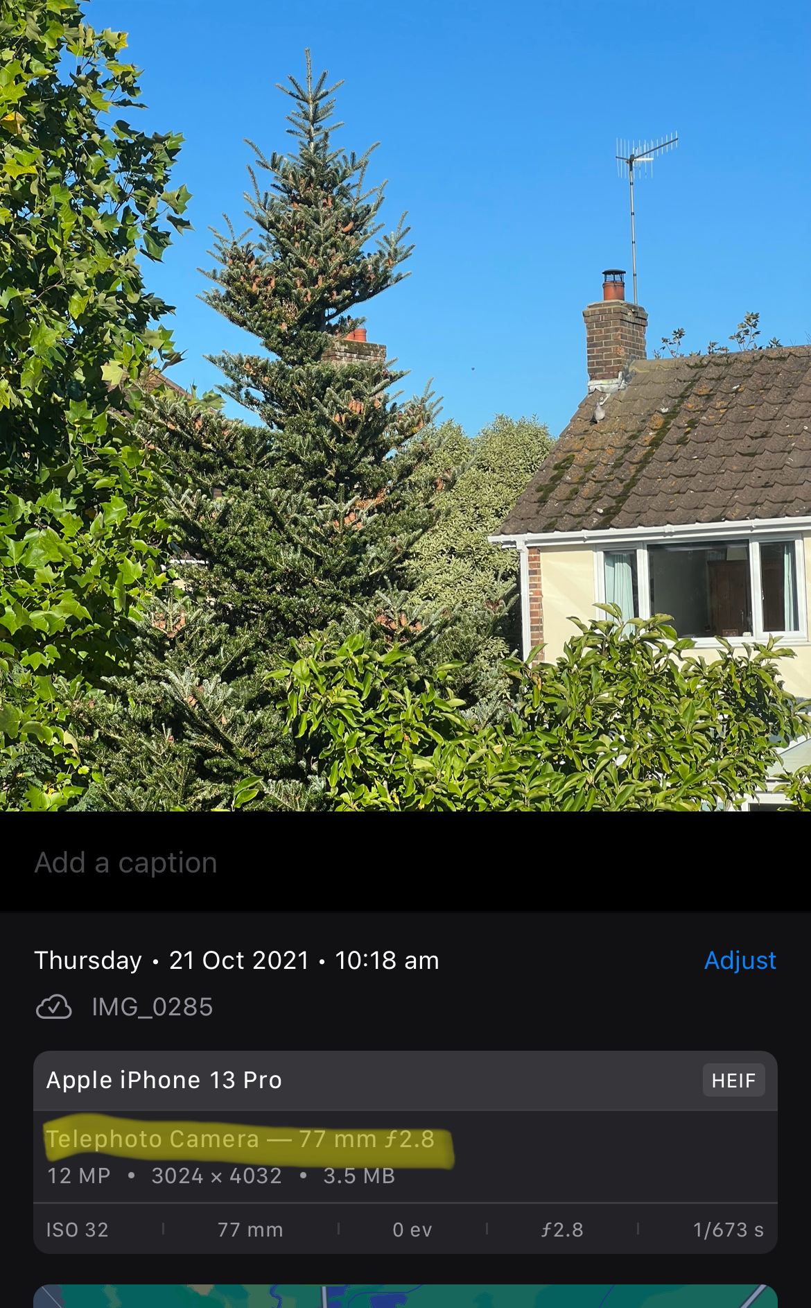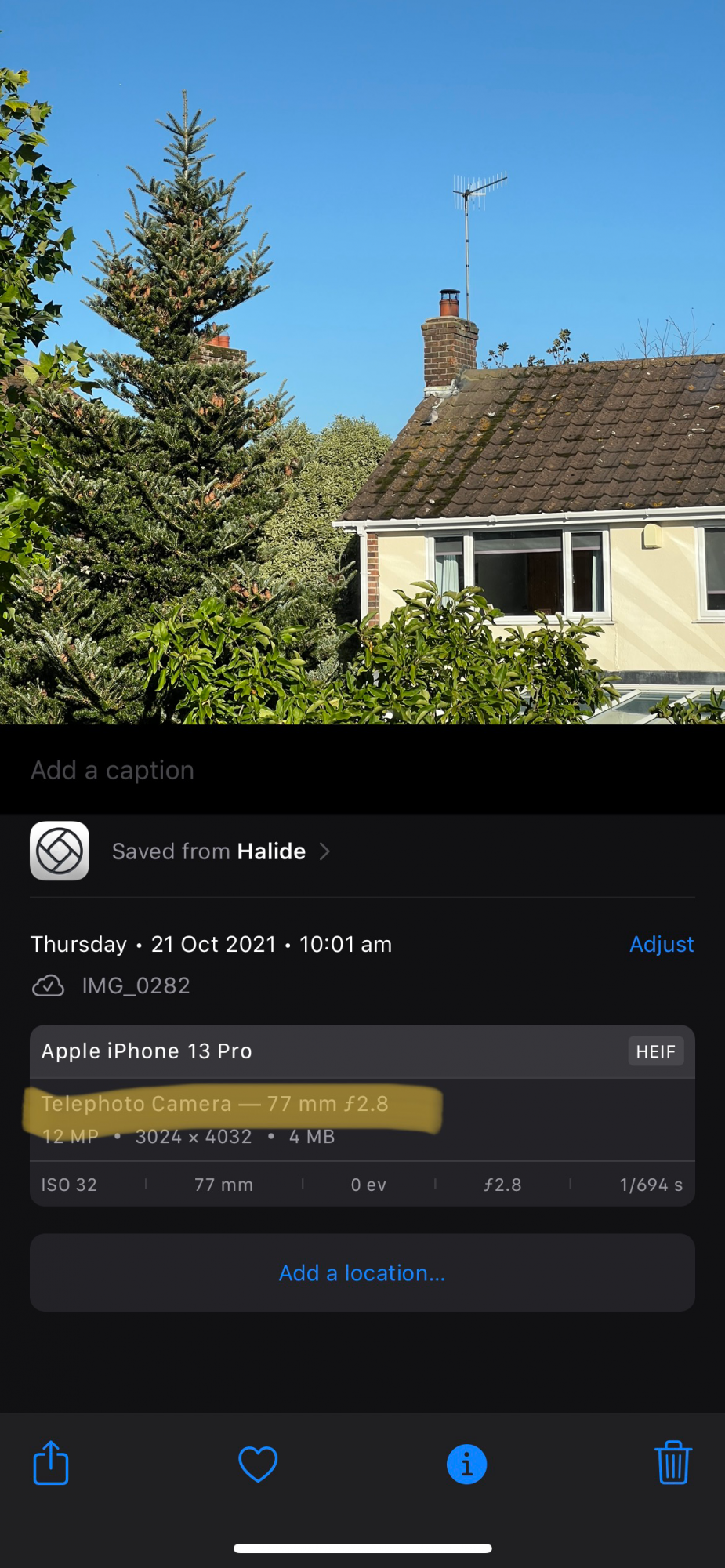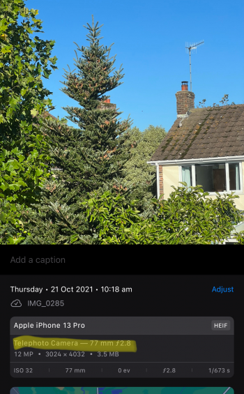 And, sure enough, looking at the metadata in the Photos app, the native app took it with the wide lens and digitally cropped it.