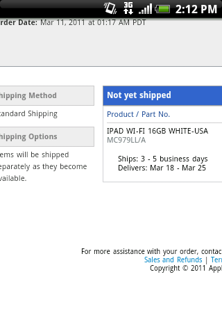 i ordered two ipads, one 16GB wi-fi in black and one 16GB in white with blue smart covers for both. currently, the black ipad has arrived in Anchorage and both smart covers have arrived in Chicago, but the white ipad still says "yet to be shipped." odd that one has shipped and not the other, but at least the black ipad should arrive here in MN soon (fyi order was placed at 1:07 PT).
