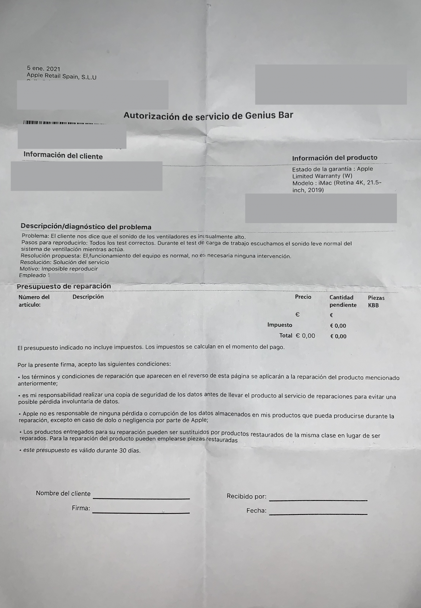 I am convinced Apple is sourcing different vendors for their fans on the 2020 model then. As I write this I sit in a dead silent room, windows closed, nothing else running in this room except my 2020 27" iMac and even with my sensitive ears I cannot hear anything at all. Only when I walk to the back of the machine and put my ear right up to the vent do I hear a slight whirling.I also expect powerful computers to be noisy when under load. That was never my complaint.