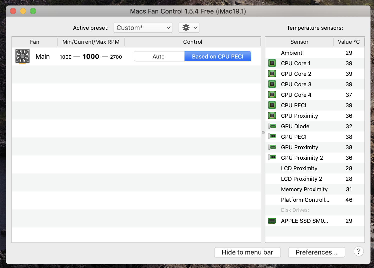 That being said, I don't know your workload, but I'm surprised your fan is spinning up much. The base model 2019 5K iMac's CPU has a TDP of 65W whereas mine has a TDP of 95W, and it takes my iMac about 20-25 seconds of being run at 100% before the CPU PECI temperature gets to 70. But, maybe you do that sort of thing often.